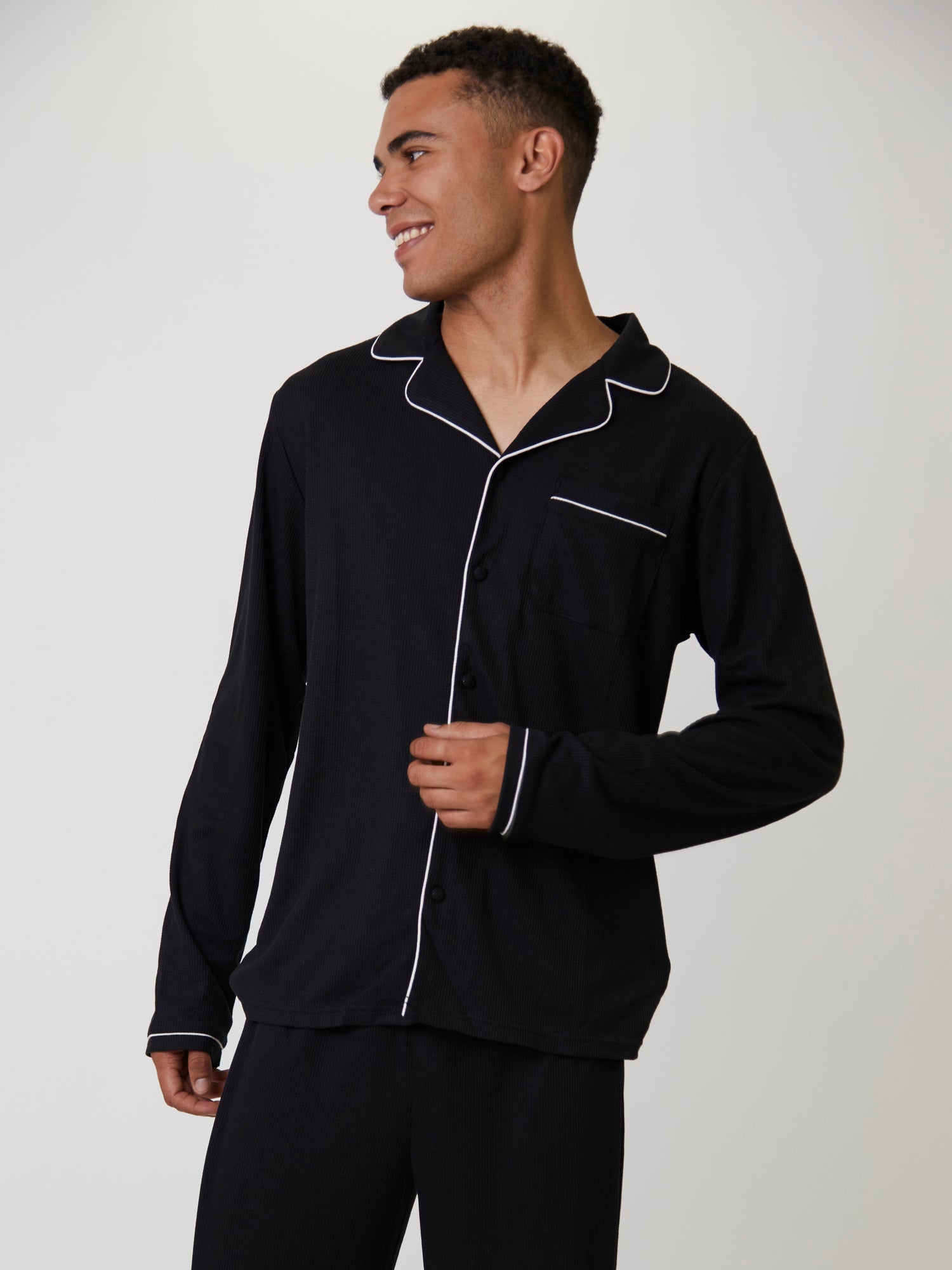 Black Waffle Bonded Fleece Lined Hooded Robe