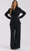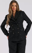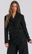 Black Metallic Tweed Double Breasted Tailored Jacket