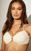Cream Crinkle Textured Bandeau Top With Ring Decal