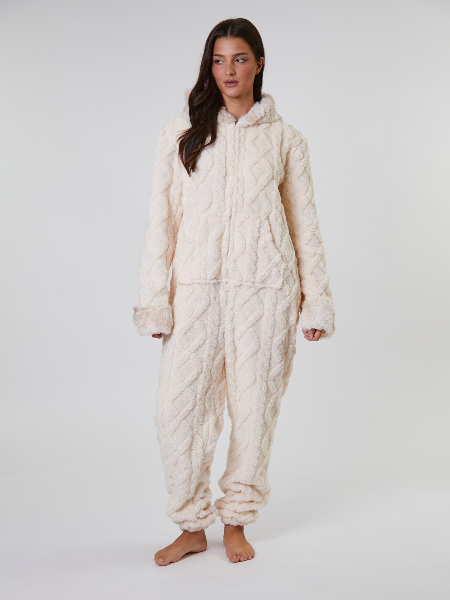 Cream Cable Cut Sherpa With Faux Fur Trim All In One