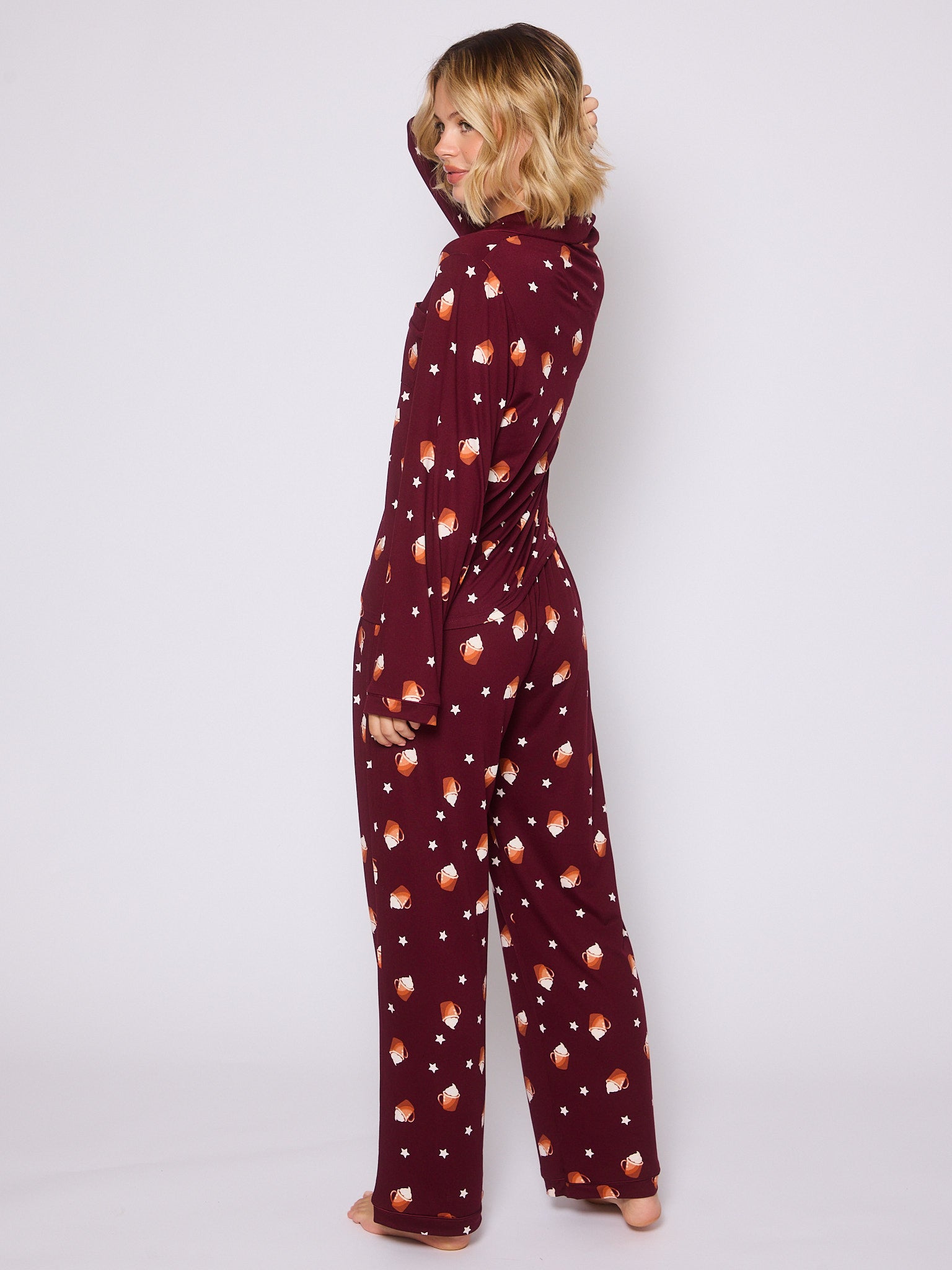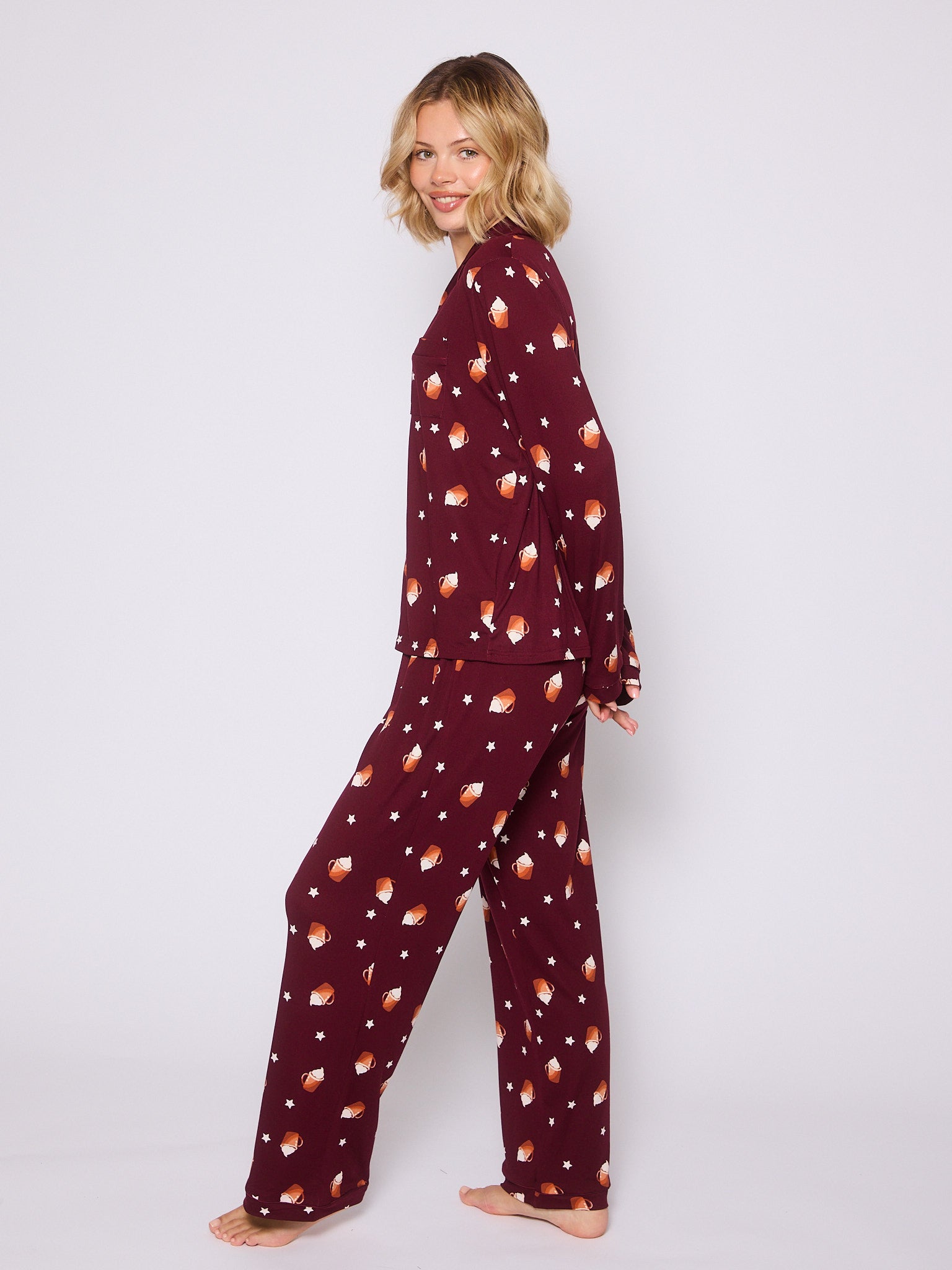 Hot Latte Long Sleeved Button Down Traditional Pyjama Set