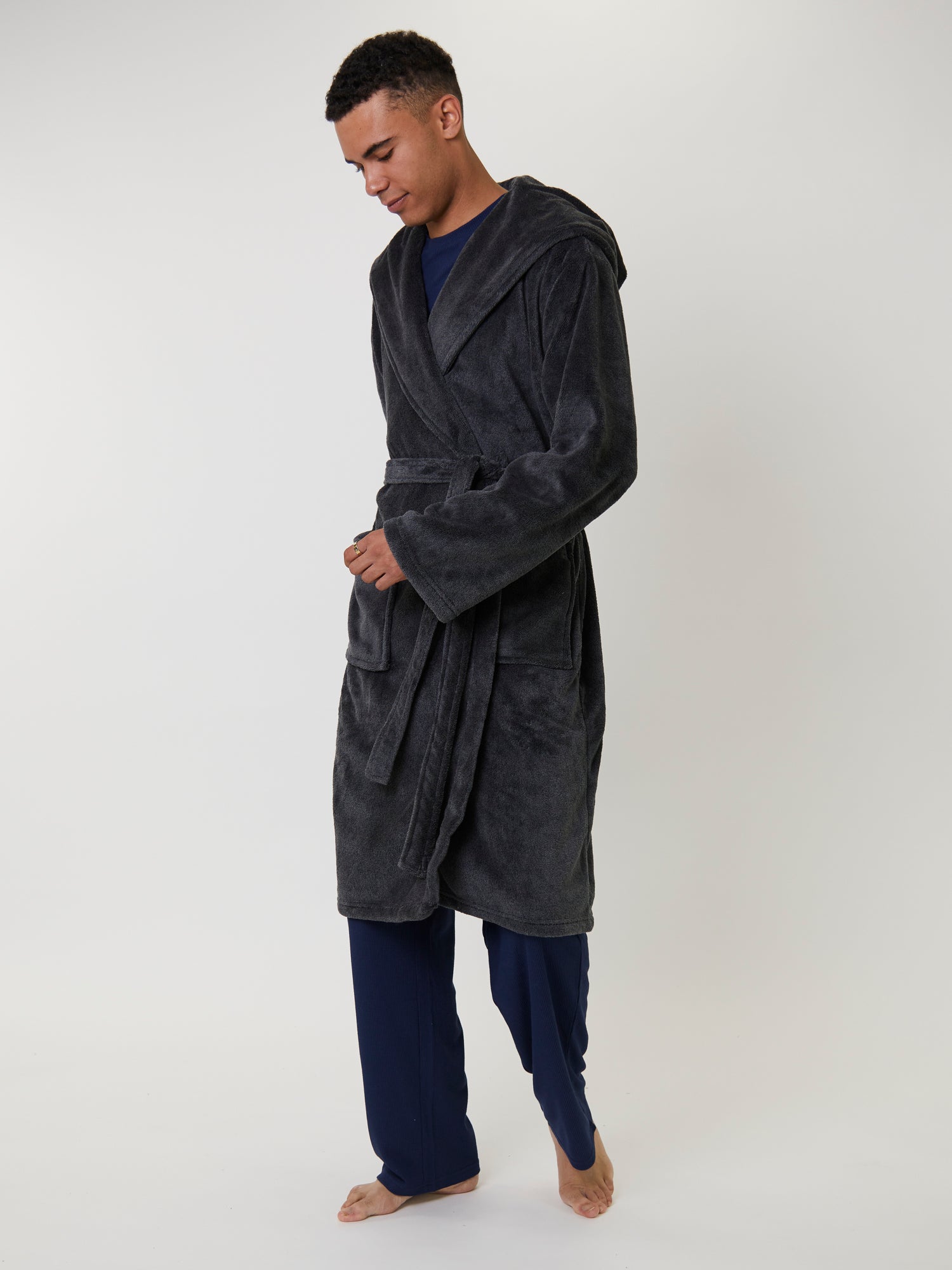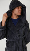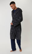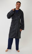 Blue/Grey Textured Hooded Mens Dressing Gown