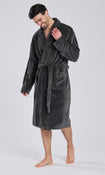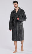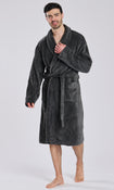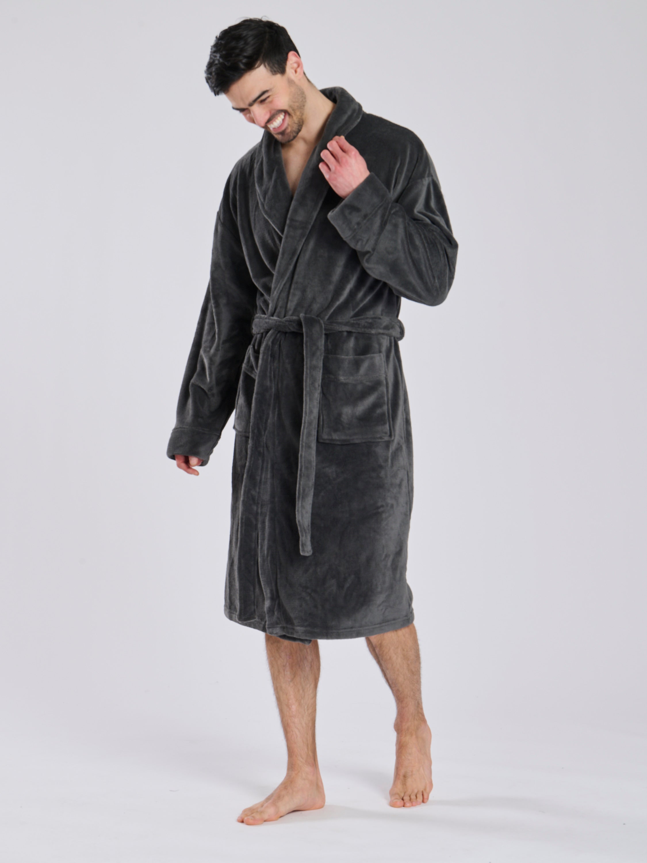 Mens Grey Fleece Shawl Collar Dressing Gown