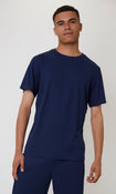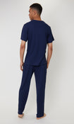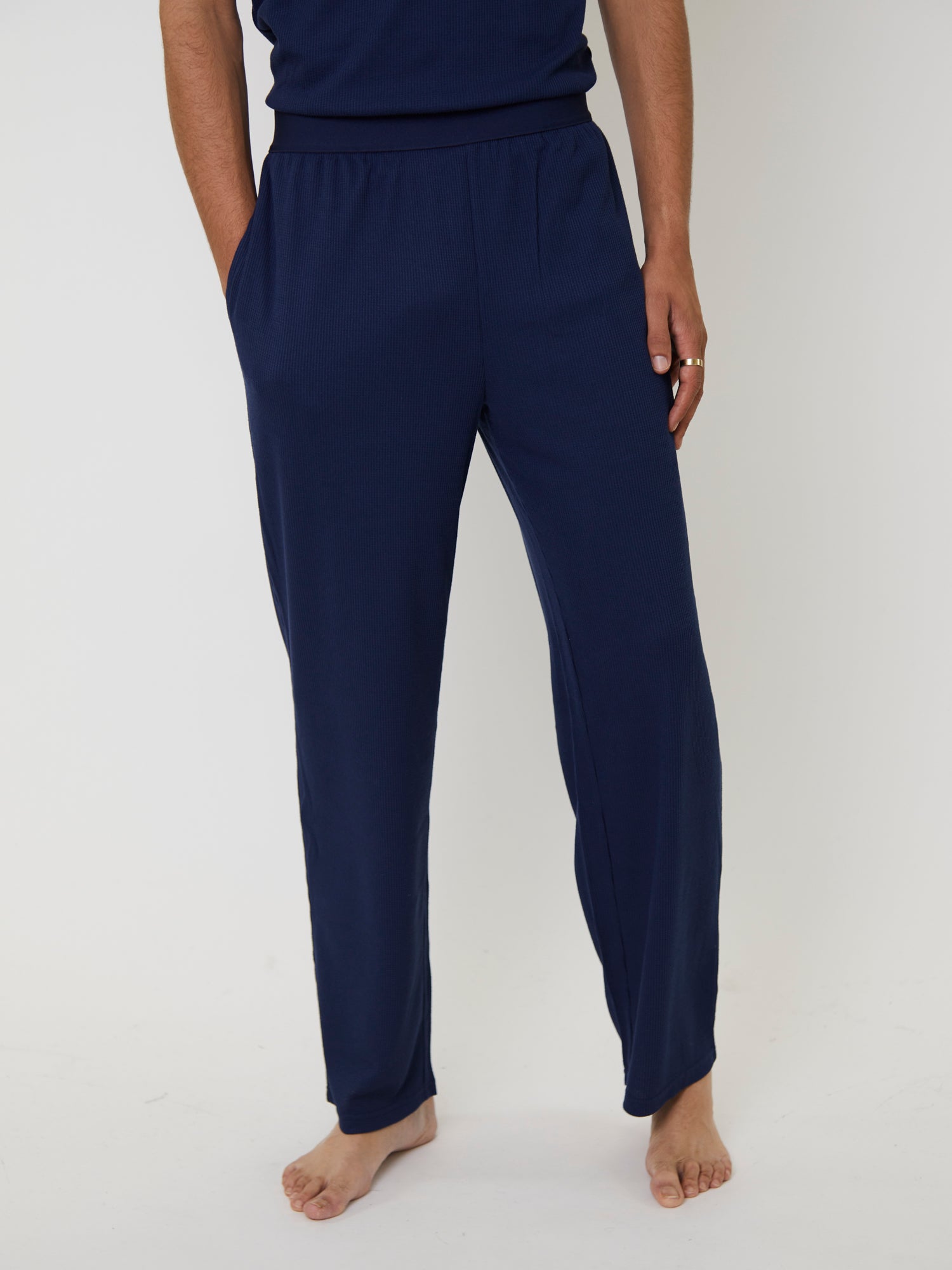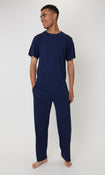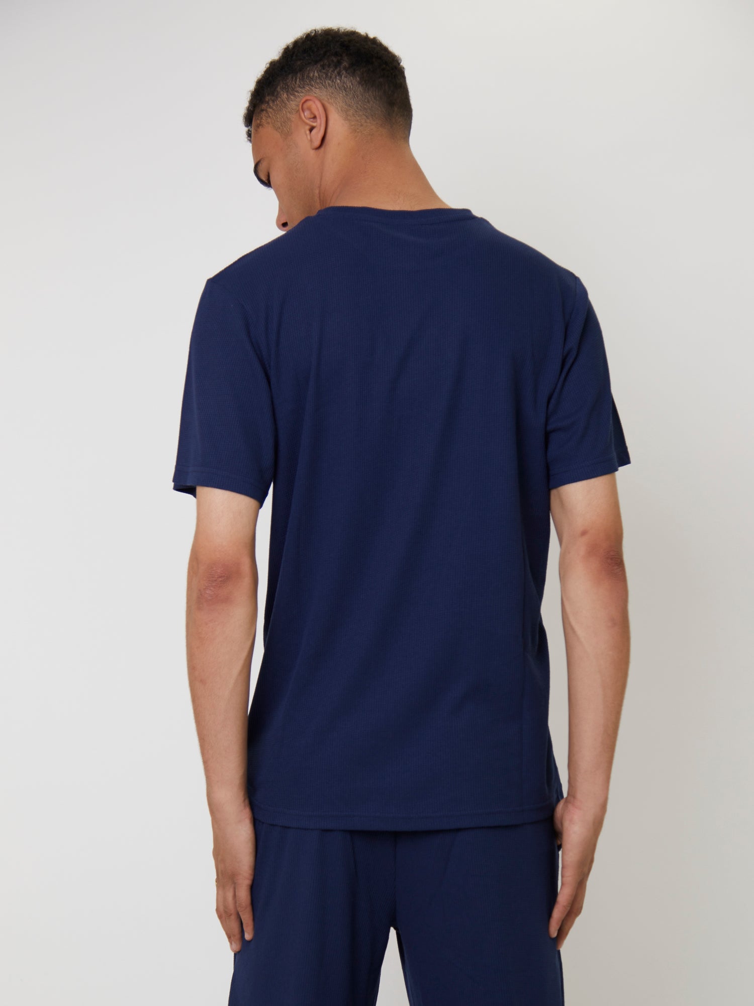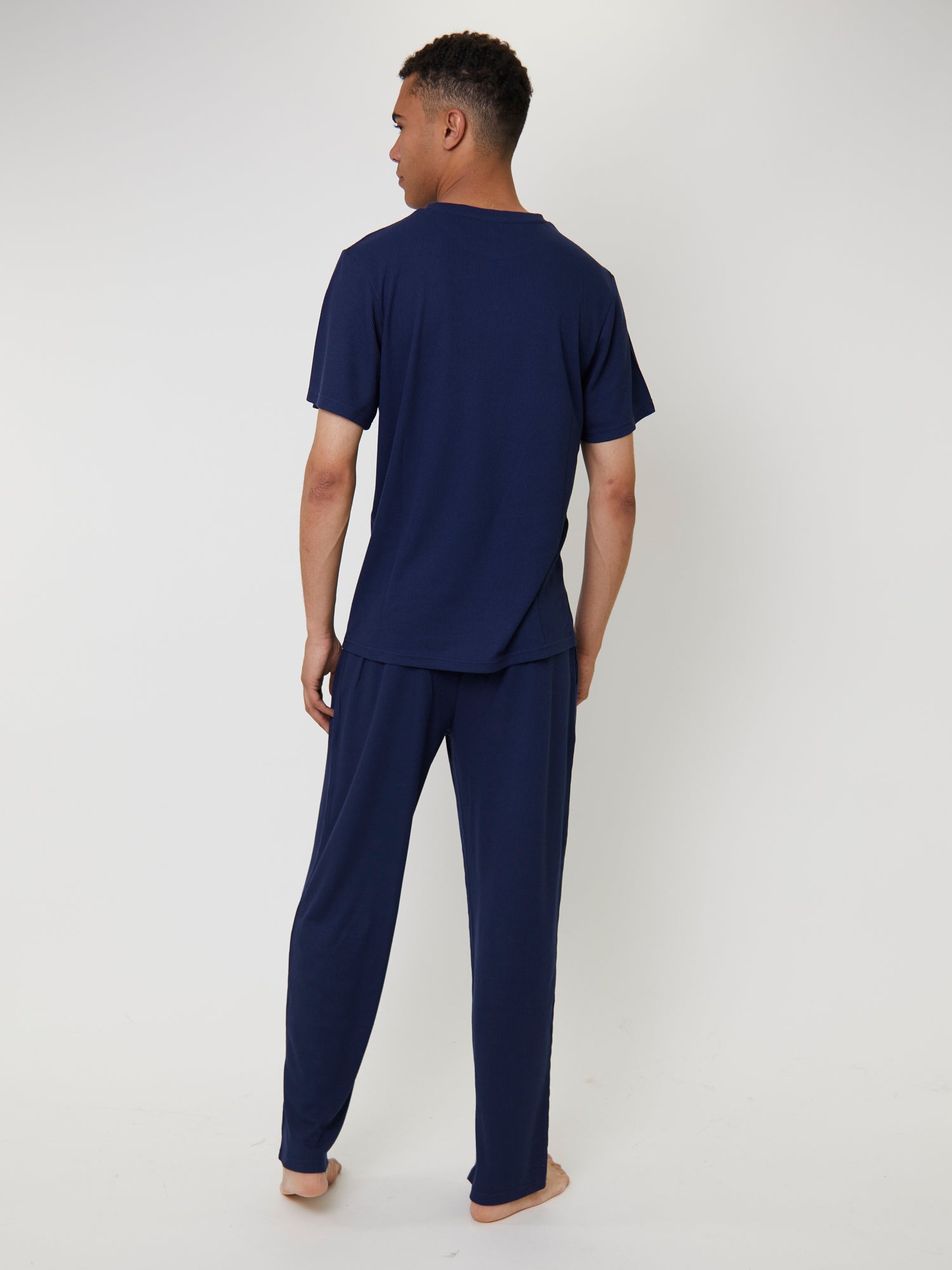 Navy Short Sleeve And Trouser Waffle Pjyama Set