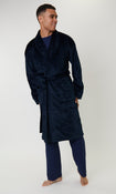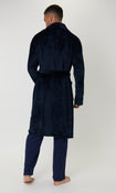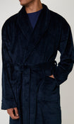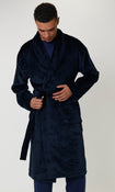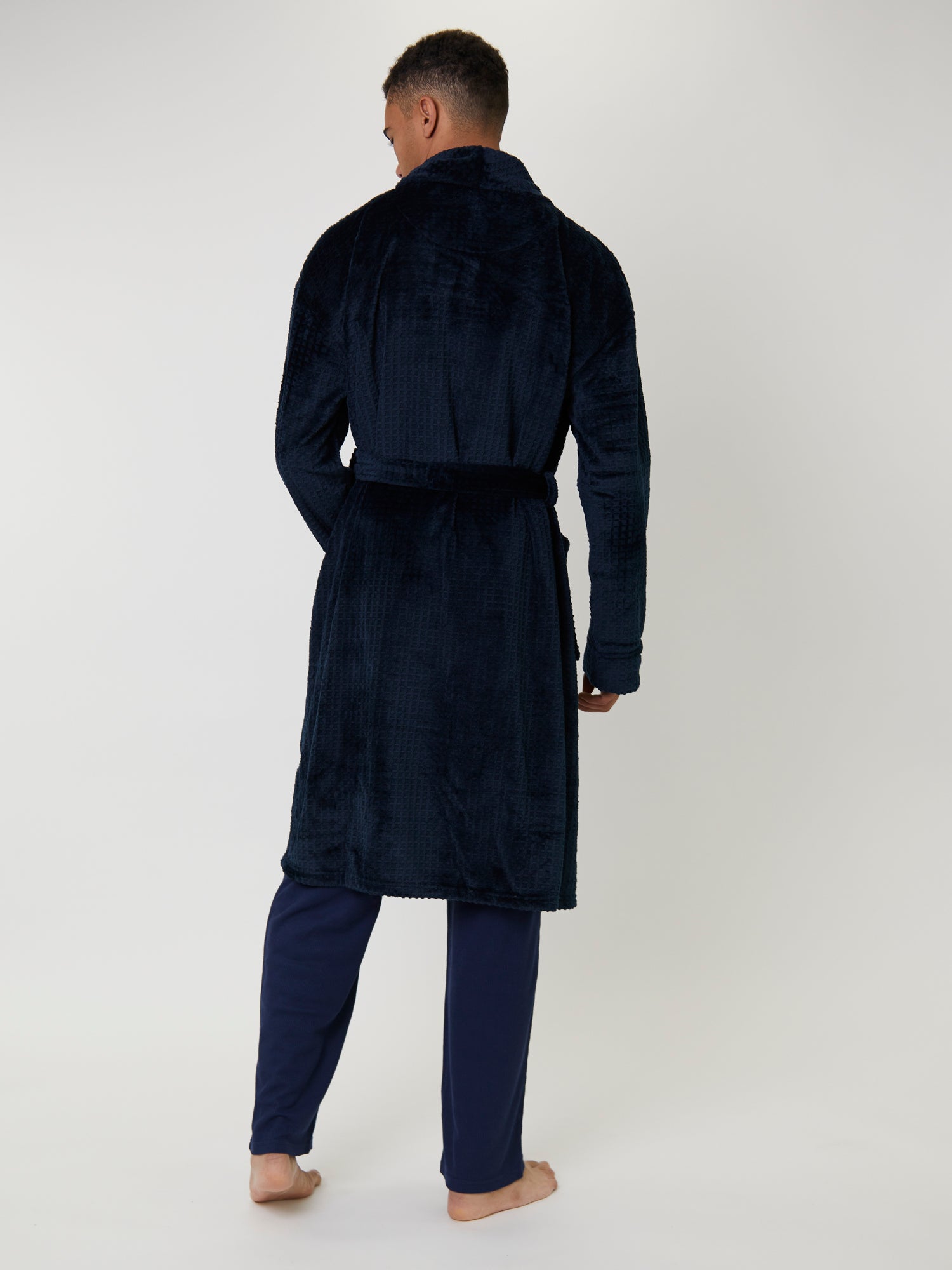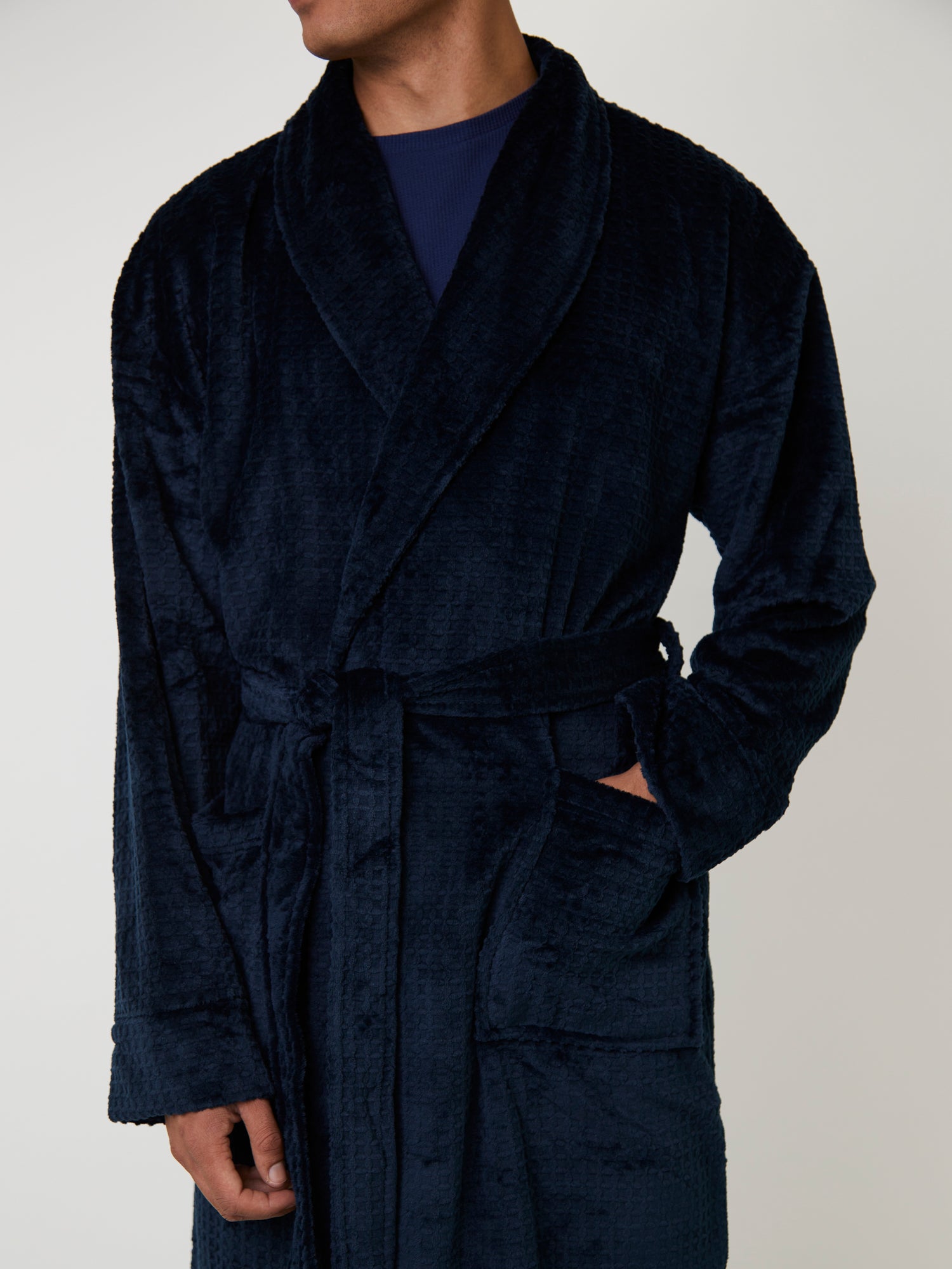Mens Navy Waffle Cut Fleece Shawl Collar Robe