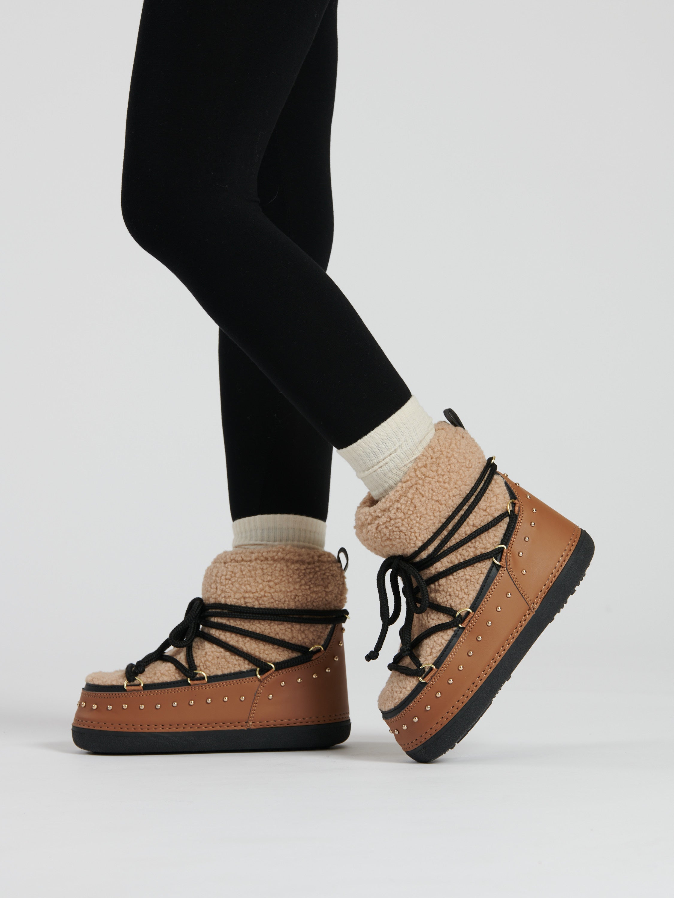 Tan Borg Snow Boot With Stud Detail