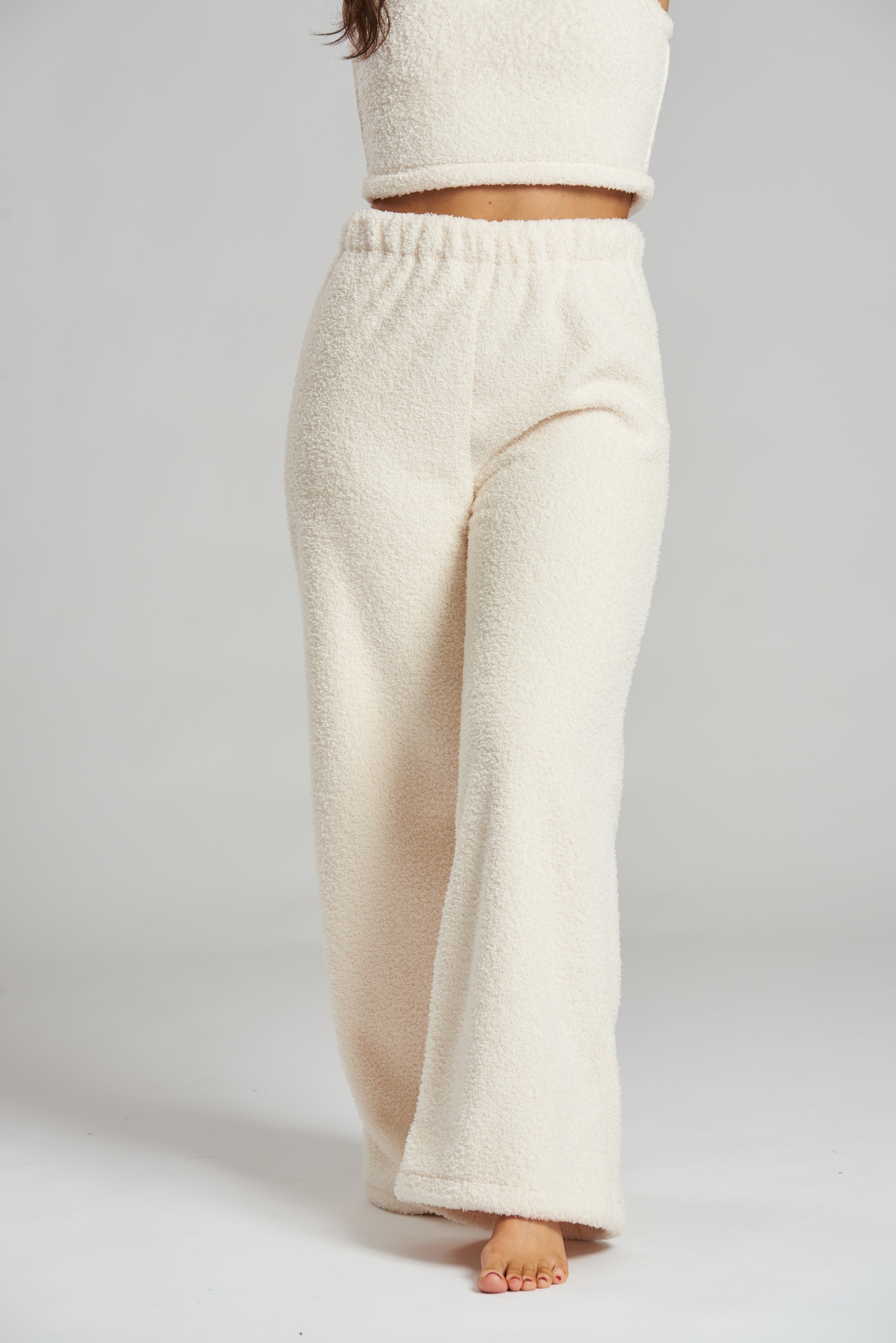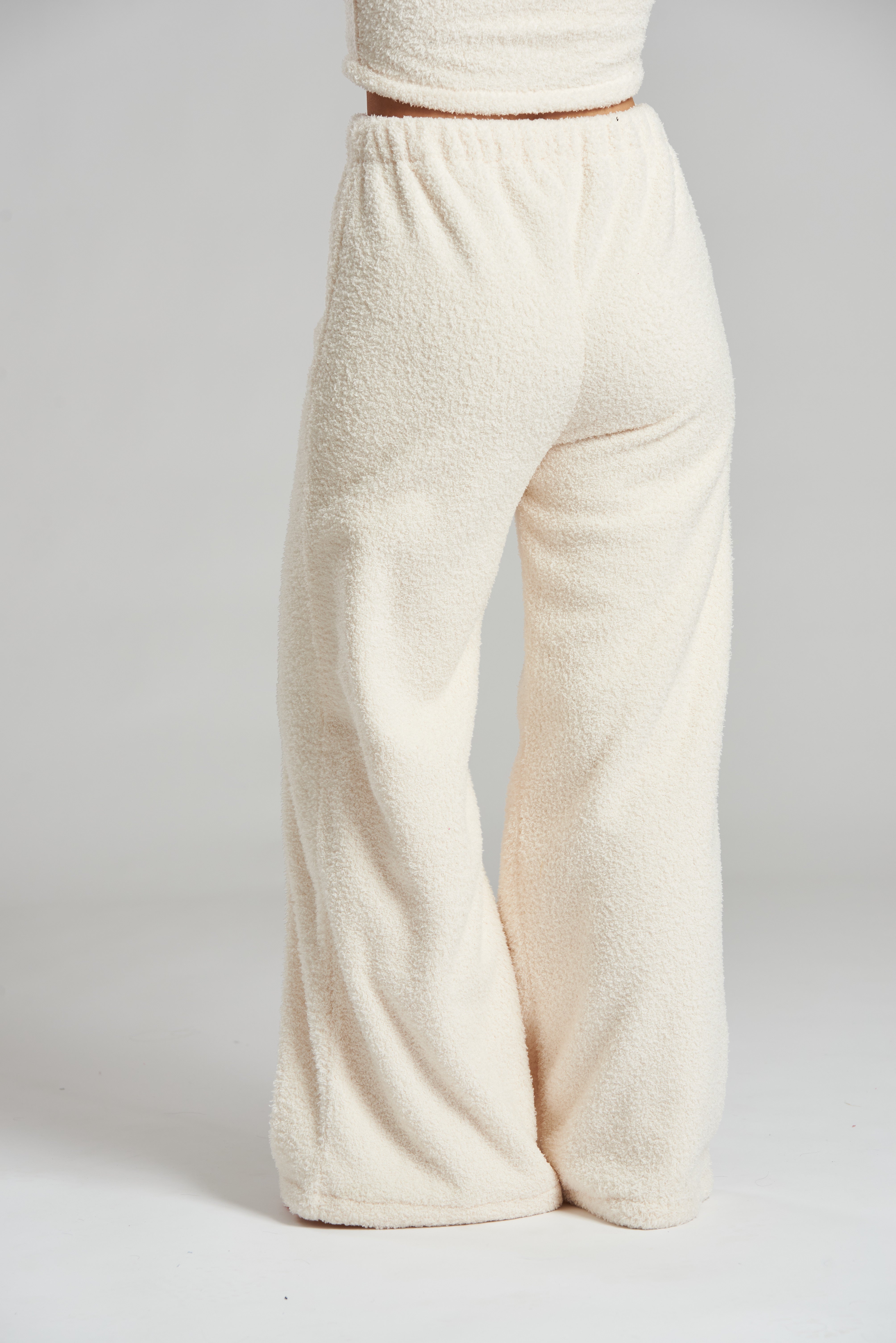 Cream Soft Fuzzy Wide Leg Pants