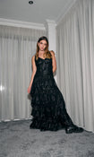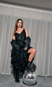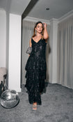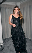 Black Metallic Ruffle Strappy Shoulder Maxi Dress