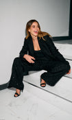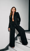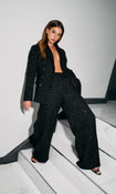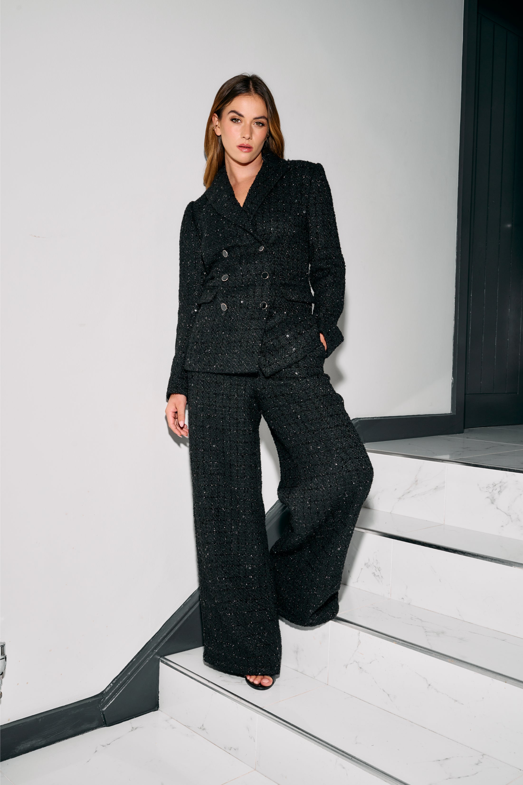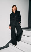 Black Metallic Tweed Double Breasted Tailored Jacket