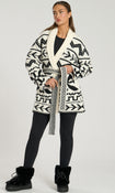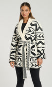 Monochrome Aztec Jaquard Waist Tie Knit Cardigan