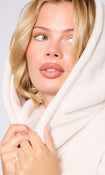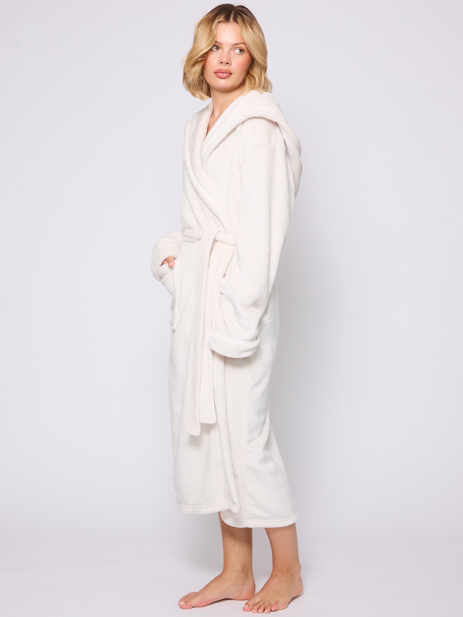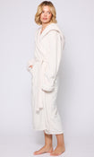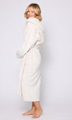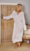 Cream Ribbon Trim Luxury Fleece Hooded Maxi Robe