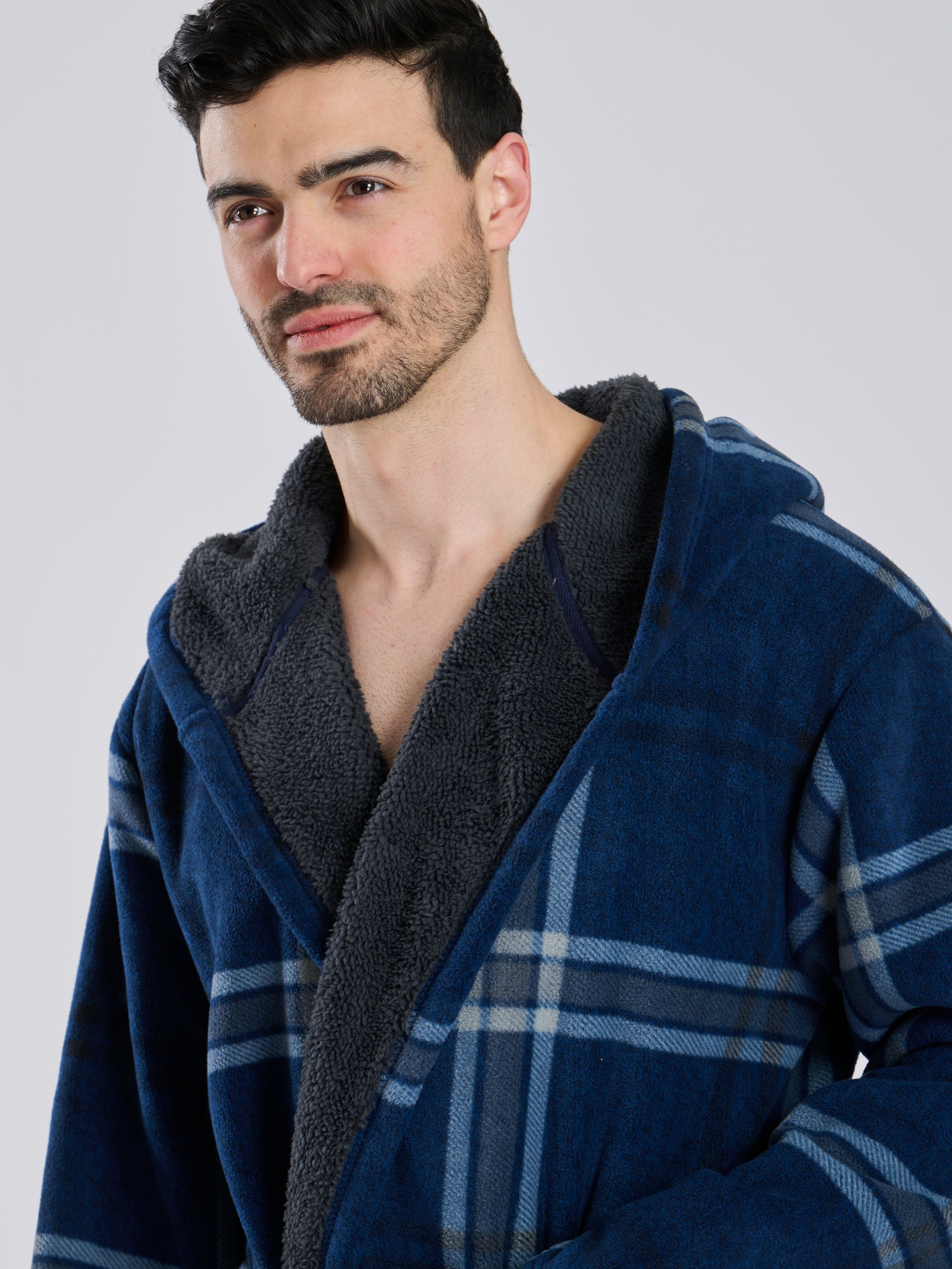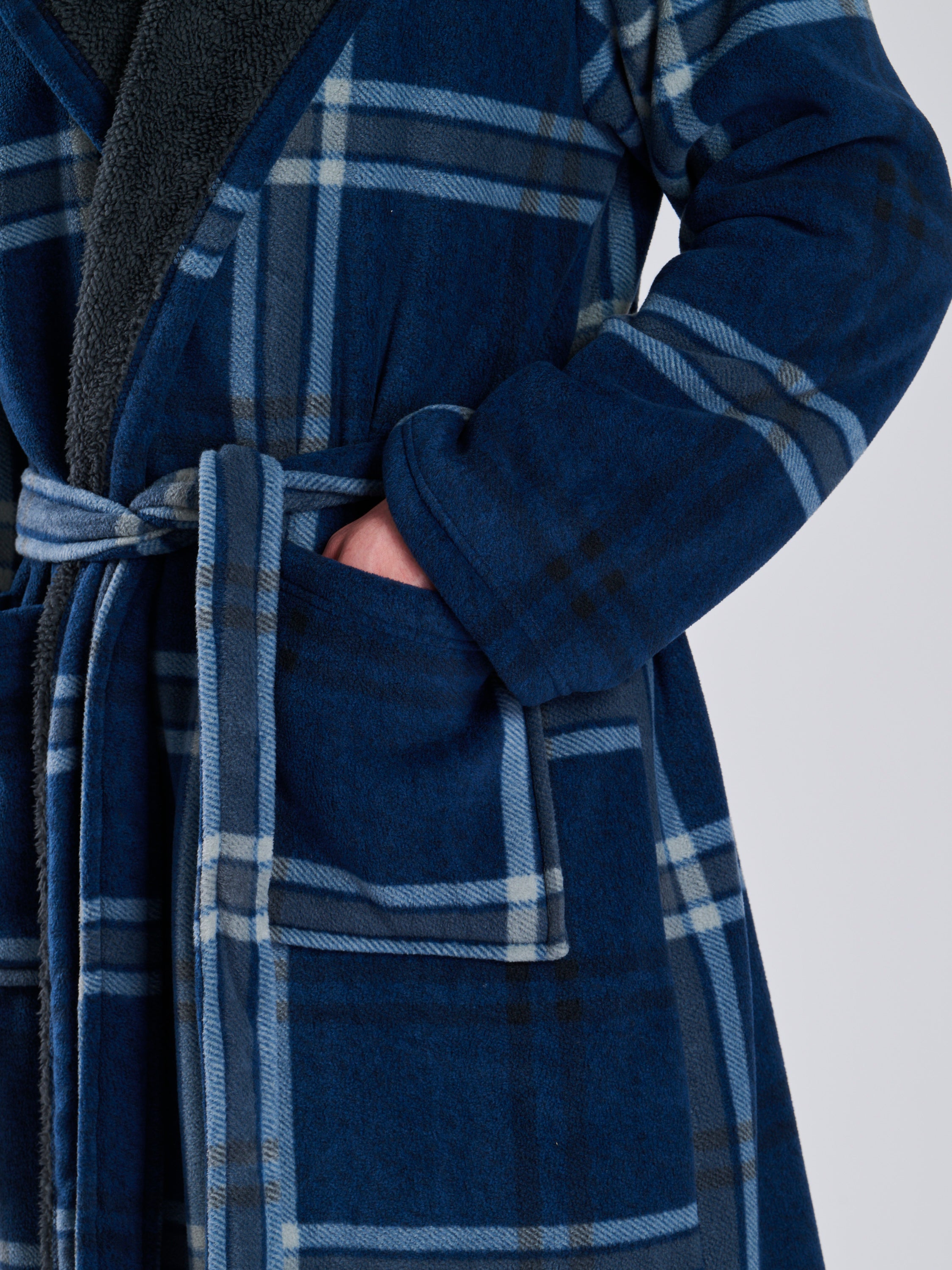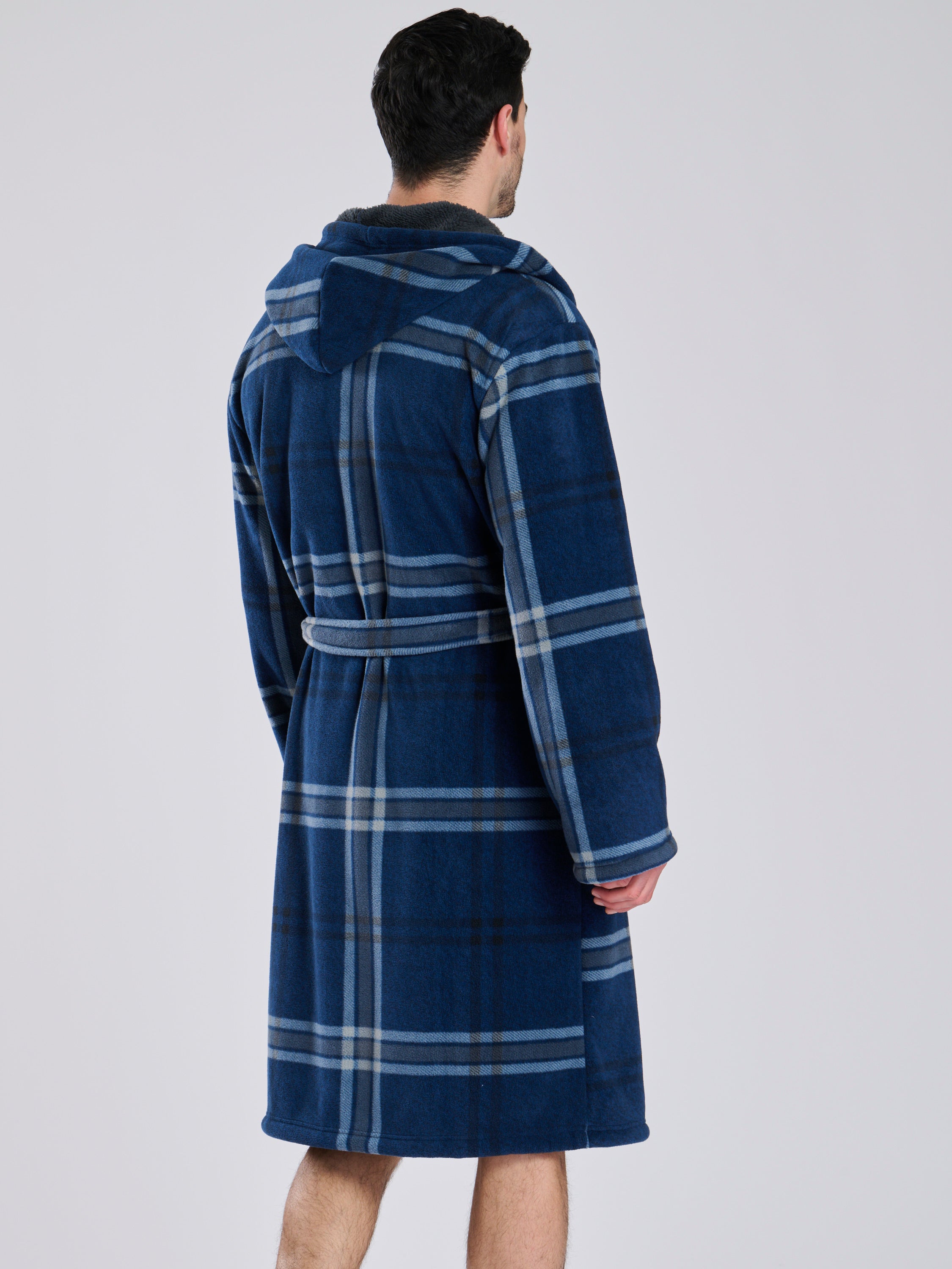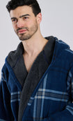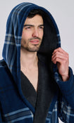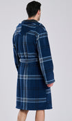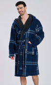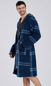 Navy Check Bonded Fleece Lined Hooded Robe